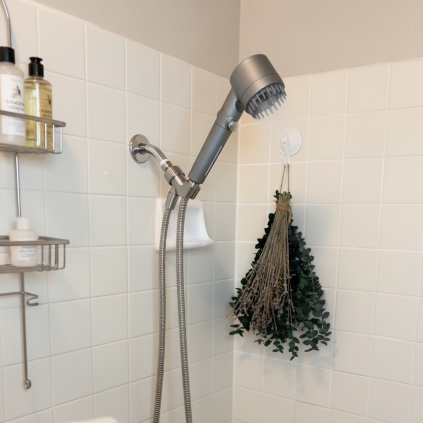 Think of it like a Brita for your shower—but engineered for the unique conditions of hot water and high velocity. Our Shower Head uses water pressure to push water through our NSF-certified KDF 55 and multi-stage filtration system. Unlike basic carbon filters that lose effectiveness when water heats up, our filter media is specifically designed to handle shower conditions. As water flows through, chlorine and heavy metals are neutralized before they ever touch your skin or hair.